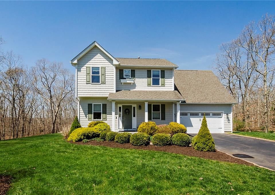 Amazingly maintained one owner home located in the sought after Oak Hill Association . Entering the house from the covered front porch , you find yourself in the great room and heart of the house. The dining area is located at the front of the house and seamlessly flows into the family room and eat-in kitchen. Distinct architecture in the family room give it a distinct feel . The stacked stone fireplace houses the pellet stove which will stay and is a great supplemental heat source. Granite kitchen countertops and stainless steel appliances including a cooks preferred gas fired cooktop . A half bath completes the first floor . Easy maintenance hardwood floors can be found throughout the house. The second floor has three guest rooms all with generous closets and a full shared bath . The master bedroom has two walk-in closets along with a private bath containing a double sink vanity and shower. The laundry room is located on the second floor . A dry , unfinished basement is a perfect for storage. Through a glass door off of the great room is the stamped concrete patio and fenced in back yard. The back yard abuts the wooded neighborhoods common area . The backyard shed fits the lawnmower and yard equipment perfectly. Conveniently located within a 5 minutes to both north south 95 exits , stores and restaurants and located in the Chariho school district.