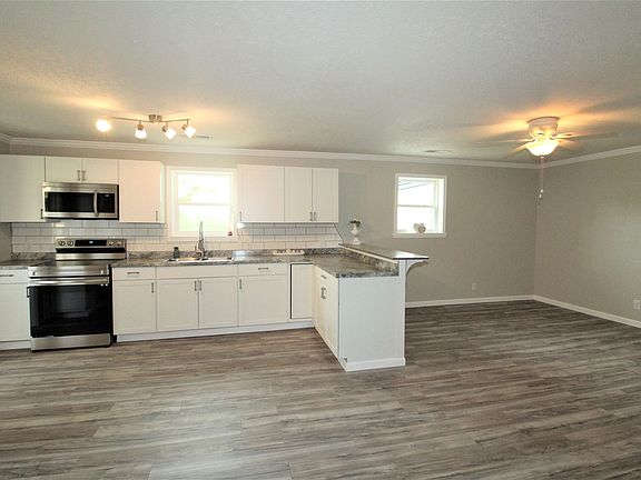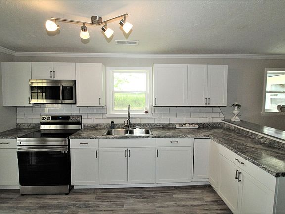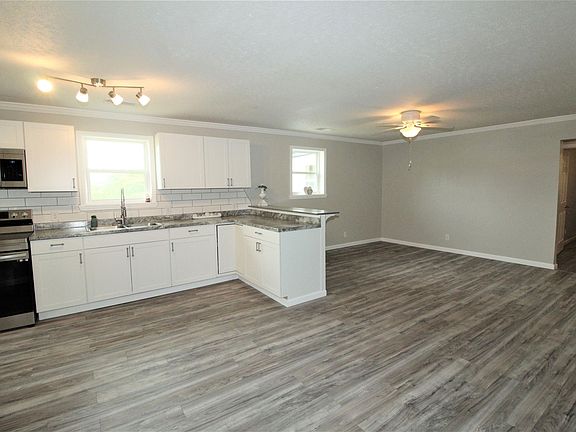 Country Paradise-Completely Remodeled 3 Bedroom, 1 Bath Featuring Large Living Room and a Large Kitchen Open to Dining Area, New Cabinets & Countertop with a Breakfast Bar Area Perfect for Entertaining, Beautiful Subway Tile Backsplash, Large Laundry Room with New Cabinet & Countertop perfect for Area to Fold Clothes, Updated Electrical & Plumbing, New Flooring Throughout, New Windows, New HVAC & Duct Work Installed, Bathroom has New Tub with Tile Surround, New Vanity & New Commode, All New Light Fixtures Installed, Fresh Paint Throughout Interior. Exterior has Been Painted with New Shutters Installed. Home is Nestled on 4/10ths of an Acre but is Surrounded by Farmland on the Side and Back of it that makes it feel Larger. 12x14 Storage Building gives Space for those Extras.