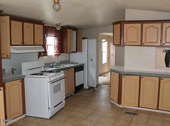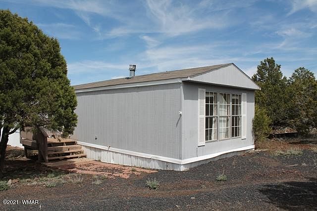 Home needs some fixing up but has potential to be a very affordable second home, starter or rental property. Located on a very nice level, well treed piece of property totaling 2.3 acres. Metered water, nice subdivision about 15 miles east of Show Low.