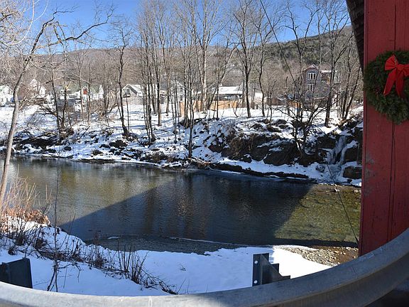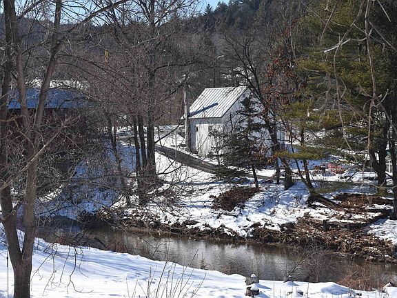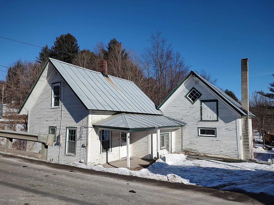 Available for immediate occupancy, this 3-BR, 1-ba Cape Farmhouse with flat side yard and river frontage along the Dog River, directly adjacent to a historic covered bridge. Listen to the sounds of the river from the covered front entry porch. Eat-in Kitchen with appliances and laundry, plus a separate dining room available. Two first floor bedrooms and full bathroom, too! Enclosed rear porch. Softwood flooring upstairs. Large open room to the left at the top of the stairwell would make a nice office space or den, right outside the largest of the bedrooms. Some vinyl replacement windows. Standing seam metal roof. Storage space in the basement area of the barn and under the rear porch, accessed from outside. Sure, the house needs some wood repair and exterior paint, but the inside, which has only recently been vacated by tenant, is livable, on day 1. Fresh paint and replacement carpets would really make a big difference. Adjacent residence has right-of-way driveway across this property. Portion of the subject lot to the east side of driveway, down towards the river frontage, is considered flood plain according to available FEMA maps. House is in close proximity to thru street and active rail road tracks.