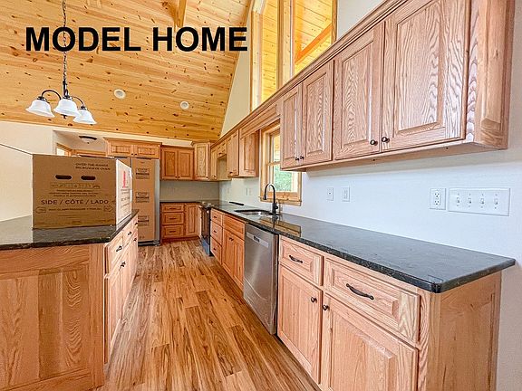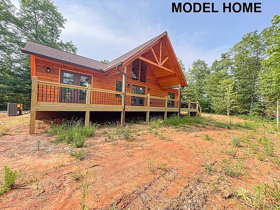 2 bed, 2 full bath new construction ranch style cabin, sitting on 2.08 acres of peaceful woods with a beautiful mountain view. From the covered entry, you will walk into a great room that features a vaulted wood ceiling; a kitchen with granite countertops, an island, and alder cabinets; and a living room with a charming wood burning fireplace. Off of the great room you will find both bedrooms with walk-in-closets, two full bathrooms, a laundry room, and access to the back porch and deck space. Downstairs is an unfinished basement, plumbed for a third bathroom. Located just west of Murphy, NC.