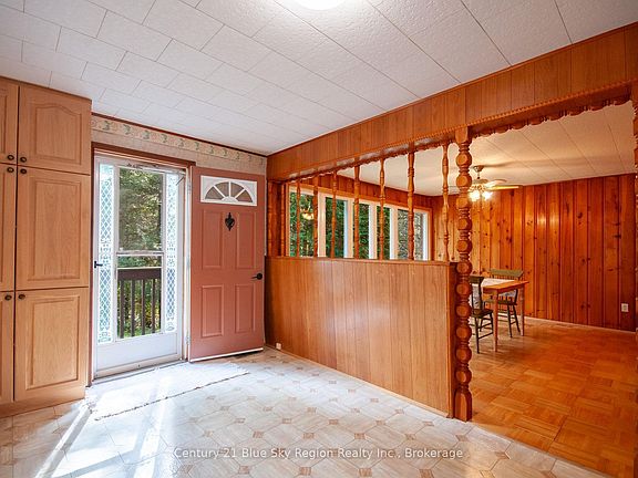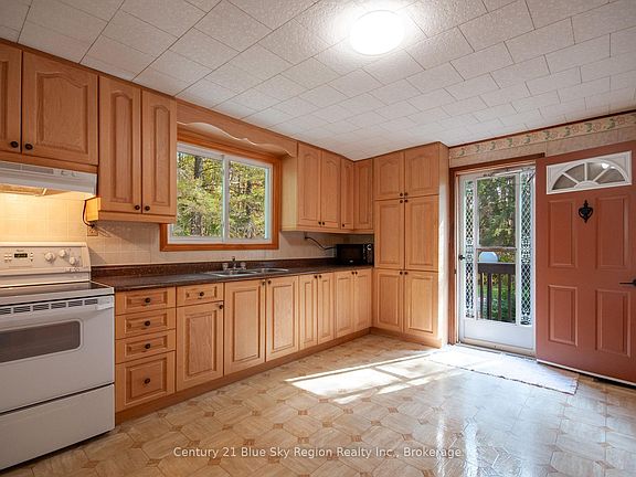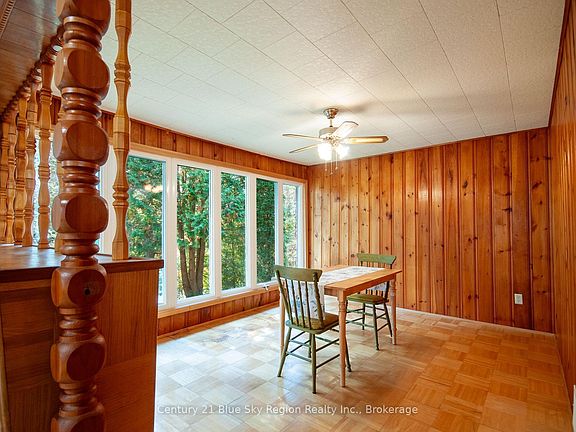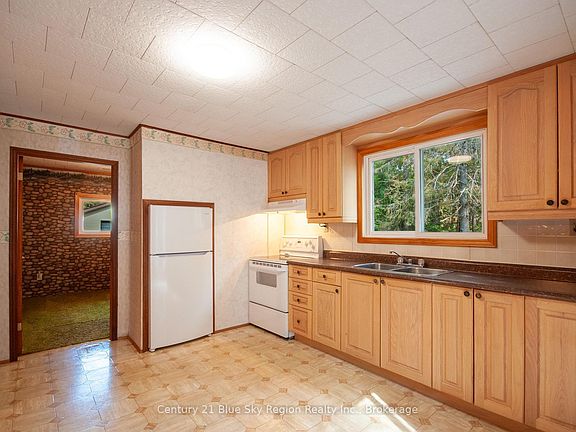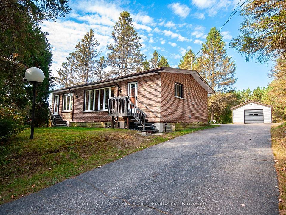 This solid 3-bedroom, 1-bathroom country bungalow offers the perfect blend of privacy and convenience. Set on just under 1 acre and located less than 10 minutes from town, it's ideal for those seeking peaceful rural living without sacrificing accessibility. Inside, the main floor features a spacious and functional kitchen, a generous dining room, and a bright living room with a large patio door leading to a private side deck with a pergola, perfect for relaxing or entertaining. Three bedrooms and a 4 pc bath complete the main level. The lower level is approximately 60% finished and includes a large rec room with a walkout and bar area, a laundry room, and a spacious utility/storage room. Forced air heating. There is a large detached 17 ft x 32 ft garage with an automatic opener. The backyard is extra deep with plenty of room for kids or pets to play, home garden etc. There are additional storage sheds and plenty of parking on the paved driveway. Notable upgrades: main floor windows and patio door 2002, Drilled well, 2009, House Shingles 2014, Oil Tank, 2021. This home has great bones and tons of potential dont miss your chance to make it yours!