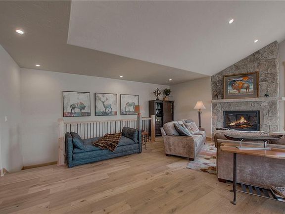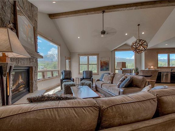 Gorgeous duplex situated next to open space with unimpeded views of the Gore Mountain Range. Incredible views from the walls of windows throughout the great room. Luxury finishes throughout with beautiful hardwood flooring, tiled flooring in the family room, and designer touches in every room. Main floor master with a master bath featuring "barn wood" tile. The family room has a walkout back patio perfect for a hot tub. This unique floor plan has a private "cabin" feel.