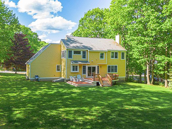 Follow the sea breeze to this beautiful Colonial-style residence tucked in a coveted York neighborhood. Only minutes from Long Sands and Harbor beaches, live your best life with the ebb and flow of ocean waves in the distance. Nestled amongst trees, this lovely home is set back from the road, offering rare privacy in a convenient, in-demand location. An inviting foyer welcomes you into the heart of the home: a generous eat-in kitchen with granite countertops and a breakfast area bathed in natural light. The adjacent family room is both comfortable and spacious, a flexible gathering place for quiet nights with loved ones and entertaining guests. Off the kitchen, French doors open to a large deck overlooking a level backyard and lush, irrigated lawn. A wonderful spot to watch the birds as you enjoy coffee in the morning or relax on summer evenings! High ceilings, hardwood floors, and a neutral color palette exude a timeless quality throughout the first level. Upstairs, the primary suite offers a peaceful ambiance, with all the amenities you'd expect, from a tiled bathroom with double vanity to a walk-in closet. Rounding out the second level are two additional bedrooms, another full bath, and a bonus room well suited for work or play. Nature lovers will appreciate that the neighborhood borders conservation land with hiking trails leading to Hodgin's Pond. And close proximity to the Village means that many restaurants, shops, and conveniences are only a stroll away. A unique opportunity to reside in the charming, coastal community of York! Open house May 11 from 11am-2pm