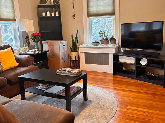 Large 3-bed/1-bath apartment for rent in Belmont on 2nd and 3rd floors. Living and dining rooms with hardwood floors throughout. Three bedrooms can all comfortably fit queen beds. Kitchen with dishwasher, gas stove, fridge, and breakfast nook. Bonus heated office space in basement. Private back porch. Free, dedicated laundry in-basement. Two (2) parking spots, one garage, one driveway, INCLUDED in rent. Cats OK, no dogs please. Available 3/1. First, security and brokers.