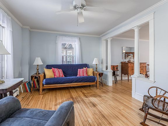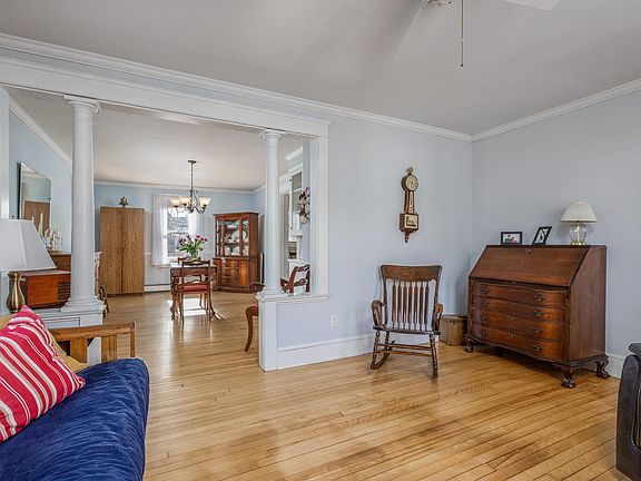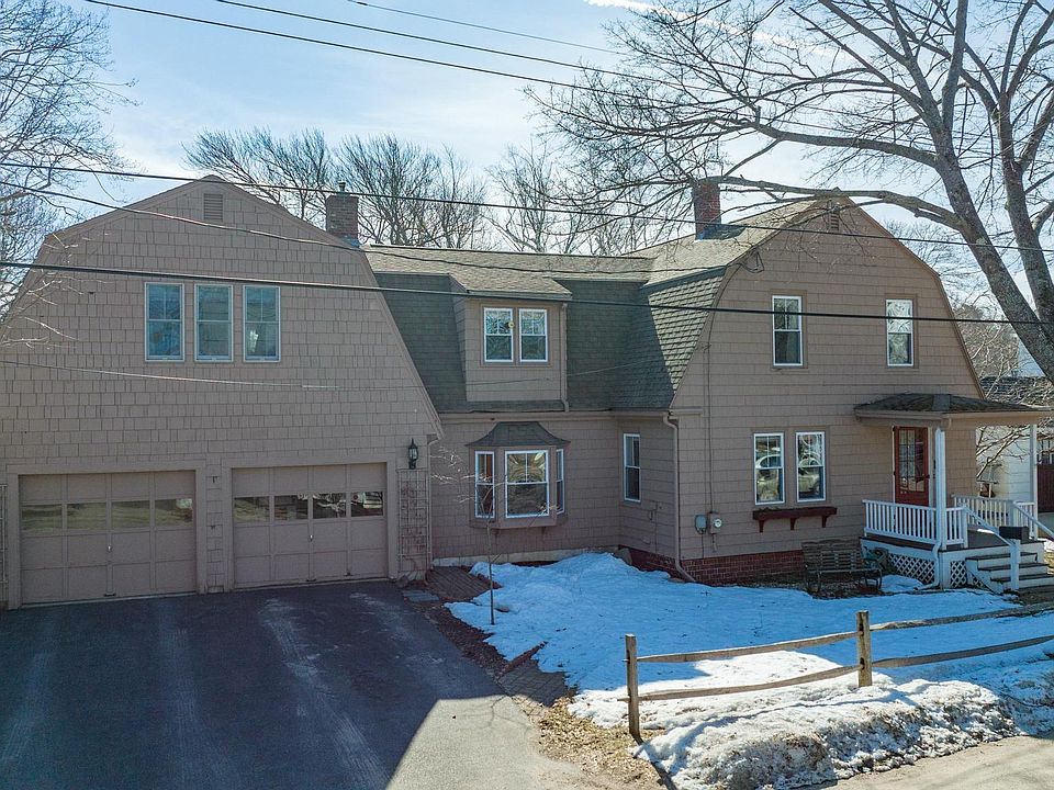 This 1932 Gambrel home is now available for sale and boasts 4 bedrooms and 3 full bathrooms. As you enter the home, you are welcomed by a bright and cheery living room adorned with beautiful columns that add character and charm to the space. The dining room features built-in cabinets, providing plenty of storage space for all your dining essentials. The large eat-in kitchen is perfect for hosting family and friends and features ample counter space and plenty of cabinets for storage. A cozy family room is located on the main floor and is equipped with a pellet stove to keep you warm and comfortable during the colder months. An accessible bathroom is also conveniently located on the main floor. Step outside onto the huge rear deck and take in the beautiful view of the fenced-in backyard, perfect for outdoor entertaining and relaxing. The primary bedroom is located over the garage and features a full bathroom, laundry room, and a bonus room attached, providing plenty of space for storage or a home office. Located in the highly sought-after Meetinghouse Hill neighborhood, this home is in a prime location, close to shops, restaurants, and entertainment. Don't miss out on the opportunity to make this charming home yours!