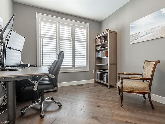 Executive Custom Built Home by area Award Winning Builder James Keating. Curb Appeal Galore! The Lot was Hand Selected by the Owner in this Perfect Location on this Quiet Court to Build a Walk-Out Basement Dwelling. 2,865+ 1,180Sqft Finished. An Irregular Large Pie Lot 76ft & 45ft combined across the rear backing partially onto Mature Trees. Attention to detail is evident throughout the Finishes and Design. From the Addition of an Extended Garage to fit the Pick-up Truck or other necessary Toys to the Large Primary Ensuite, Dressing room, second floor Laundry room and two other Ensuites to the Original Plans. Not to mention the Large Trex Deck off the Kitchen with Vaulted Covered Roof line, stairs down to an extended Cement Patio and the 8ft wide Front Covered Porch to Weather any Summer Rain Storm. You'll find it Hard to make any further Improvements here! Creature Comforts Inside consist of that much needed Separate Home Office with Large Bright Window. Upgraded Door, Window & Baseboard Trim throughout all three floors as well as Smooth Ceilings on the Main floor. Open concept Dining room and a Family room with Wood Stove for Ambiance. Now the Chef's Kitchen is Stunning with all Built in Appliances, Induction Cook Top and Prep Sink in a 14ft Island that Seats 6. Loads of Cupboards, Pot Drawers and another Bank of Cabinets in the Mud room / Coffee Station area. Rec room, Games room and 4th Bedroom below as well as another 3pc Bathroom. Extra Laundry hook-ups, rough-in for wet Bar or 2nd Kitchen Sink, In-Law or Apt Potential with the Separate Entrance.