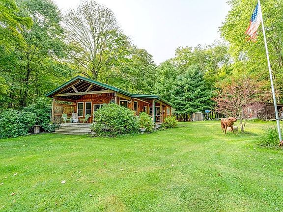 Enjoy all seasons at this beautiful lake home with fabulous lake views! Newer roof and cedar board and batten siding, vaulted tongue and groove pine ceilings in great room. Gleaming hardwood floors, thermostat controlled gas fireplace with blue stone surround, washer and dryer off large entry foyer. New well and new electric service. Last home on road offering a private and serene setting. Large shed for storage, great dock and so much more!