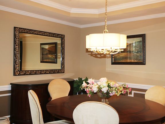 - RoomDiningRoomFeatures: Dec Molding, TRY/VLT/CATH, Floor - Engineered