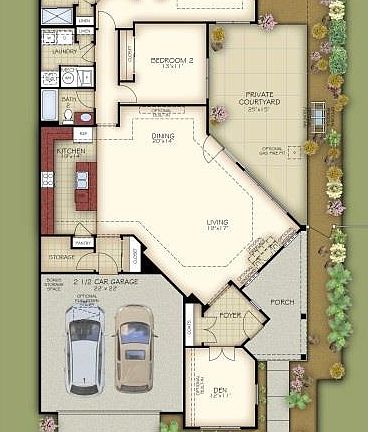 TO BE BUILT. Pick your options. The Courtyards at O'Kelly Chapel will feature 92 beautifully designed, freestanding ranch-style homes in maintenance-free community in Cary, North Carolina. Our open, light-filled homes provide style, quality and versatility with private, outdoor courtyards, spacious island kitchens, expansive 2.5 car garages and more. Enjoy the convenience of single story living or expand your living space with an optional spacious 2nd floor bonus suite, optional basement or both!)