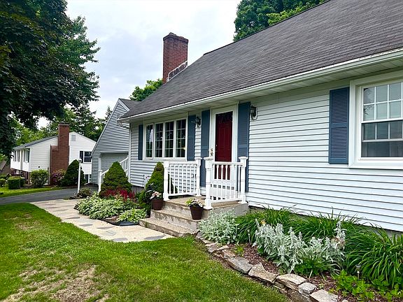 Spacious & comfortable Agawam Cape with 5 bedrooms & 2 full baths offers versatile living! The first floor features a primary bedroom, office, full bath w/ laundry, family room & an open concept kitchen/ living room with gas fireplace insert. Enjoy cooking in the bright kitchen w/ sliders leading to the expansive deck & patio overlooking a peaceful, private yard w/ garden areas & storage shed. Upstairs includes 3 additional bedrooms & second full bath. A bonus finished room in the basement, 2nd laundry hookup & ample storage. The oversized garage w/ dual entry doors provides space for parking & workshops! Many updates: new hot water heater, electric panel/service line, updated appliances (all staying), replacement windows, roof, and flooring—most within the last 10 years & more! Located in a quiet neighborhood w/ easy access to highways, schools, shops & dining; this house checks all the boxes! *** Sellers are offering a $5,000 closing credit towards updates for the 2nd floor.