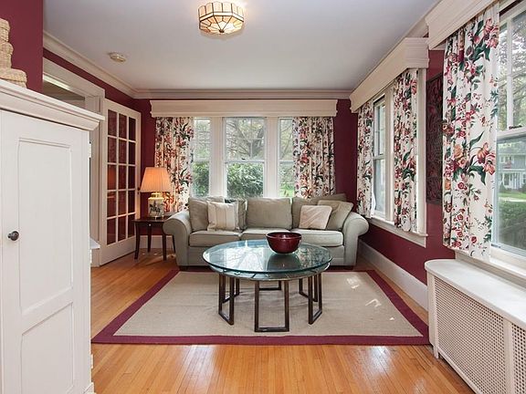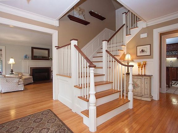Handsome, Kibbe built. center hall colonial w/stately proportions, custom millwork, hardwood flooring & great circular flow located on lovely street. Fantastic & welcoming curb appeal leads you into large foyer w/turned wood staircase providing sight lines of entire 1st floor in every direction. Great first floor living space with living & dining rooms, sunroom & expansive kitchen/great room addition. Kitchen has cherry wood cabinetry, granite tops & stainless appliances. Adjacent butler's pantry features glass front & painted wood cabinetry hiding washer & dryer down below. Enjoy outdoor living w/well landscaped grounds & multi-level deck. 2nd floor features three bedrooms w/hardwoods, good closets, updated full bath plus large master suite w/dressing room, walk in closet w/custom shelving & updated master bath. Walk up third floor showcases two more, good sized bedrooms & bath- perfect spot for home office, guest quarters or teenage hangout. New boiler provides peace of mind.