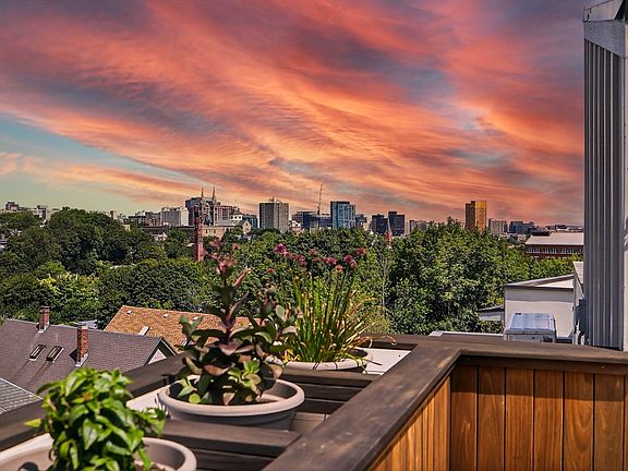 With sweeping city views from nearly every level, this 2020-built townhouse-crafted to Passive House standard and net zero-ready-offers elevated living in one of Fort Hill's most thoughtfully designed homes. Built by Placetailor, it features 14" double-insulated walls, triple-pane windows, and filtered fresh air for year- round comfort and near-silent serenity. The open layout blends clean modern design with organic warmth-white oak floors, open shelving, and a chef's kitchen with premium appliances and stone counters. The spa-inspired wet-room bath, generous bedrooms, and sunlit interiors complete the experience. A private roof deck with power, water, and space to gather sits above it all. Enjoy both off-street parking, and dedicated storage. Located beside beloved Paula Titus Park and moments from transit, 5 minutes to Longwood and 10 minutes to downtown, this home pairs sustainable design with a vibrant, connected urban lifestyle-complete panoramic sunsets and city views.