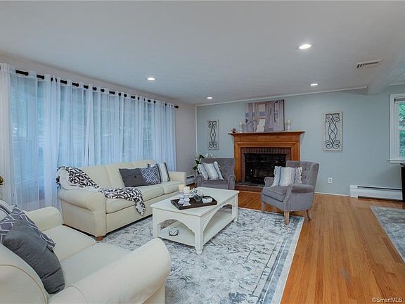 This home has much to offer in one of the most desirable locations in Bristol. Close to shopping, schools and restaurants. The main level has a kitchen/dining room combination to enjoy meals anytime and a slider that walks out to a beautiful deck and patio area to enjoy a cup of coffee on those warm summer days or having a family barbecue . A large living room with hardwood floors and wood burning fireplace insert in the main living area that will keep the house toasty and warm on those cold New England nights. A remodeled kitchen with newly painted cabinets, tile back splash and newer appliances. In the upper level a cozy setup of a recently remodeled full bath and 3 bedrooms all with hardwood floors The large two car garage connects to an additional 500 sq ft of finished basement area with bar area and full bath which will provide years of entertaining family and friends on those special days or a space for kids and teens to hang out! This home has a brand new central air system and newer roof. Don't hesitate call today to view this home.