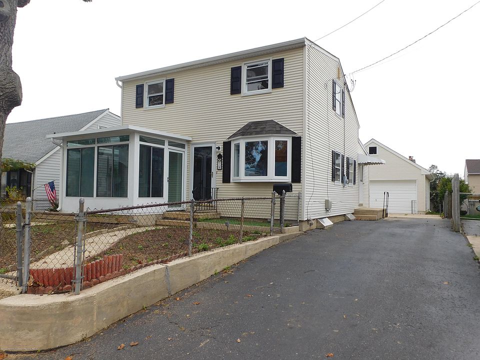 Welcome Home! 3BR,1BA 2 story home in Hazlet! Home features front LR, large EIK, new carpet and paint, central A/C, a sun room in the front of the home and two large bedrooms upstairs, huge 2 car garage and a private yard. Spiral staircase or outside entrance to basement. Situated close to major roadways.