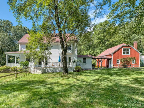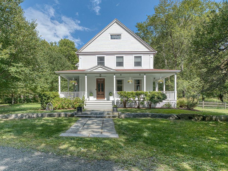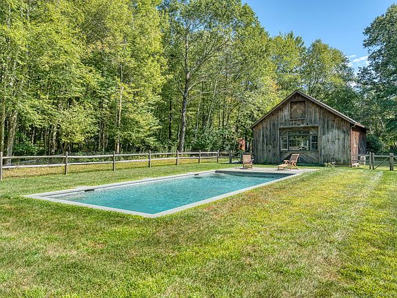 Looking for a calming and peaceful property? You'll find total peace and quiet on this 15.29 acre impeccably maintained property bordering Roxbury Land Trust land. With a beautiful wrap around porch to take in views of the beautiful fruit trees, mature gardens, pond and level grounds this farmhouse is perfect inside and out. The heated and cooled large barn is a perfect flex space for an art studio, gym or party space right in front of the beautiful saltwater pool. Inside you'll find 9' ceilings in the formal living/dining room with incredible natural light. Cozy up by the fire and continue to admire the beautiful grounds through the large doors to the porch. You'll find recessed paneling in the library along with a window seat and built-in's. Continued artisan millwork is found throughout the home. The kitchen has Dacor, Viking and Subzero appliances along with granite countertops, dual sinks and a large pantry with additional access to the porch in addition to a large family room with another fireplace. Up the dramatic open staircase to the second floor you'll find two generous sized bedrooms, a dedicated laundry room and full bathroom. In the tranquil primary suite you'll find more peaceful views of the grounds, vaulted ceilings, two walk-in closets, two baths, built-in's and another window seat to admire the property. The lower level has additional finished space perfect for a media room and additional storage. Plenty of additional space can be found in the separate one bedroom apartment above the garage with it's own deck to enjoy the peacefulness of the property. Peaceful, quiet and private yet conveniently located to all that Litchfield County has to offer. Don't miss out!