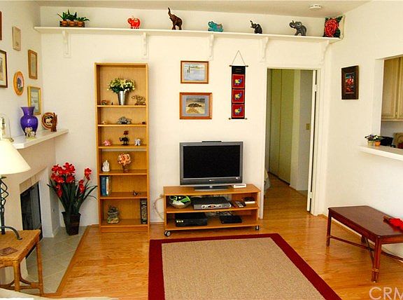 End unit with no steps close to the carpet. Private patio on greenbelt area. Kitchen open to living room and dining room. Living room enjoys a fireplace and hardwood floors. One bedroom and bath on each side of the living area both with hardwood floors. inside laundry area, washer and dryer included. Kitchen, dining room and bathrooms have tile flooring . Very close to the Ranch Santa Margarita Lake, theatres, shopping and parks. Association includes lake member ship, tennis courts and community pools