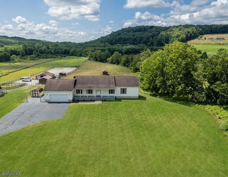 Frankford. 4.5 ACRES with open fields in neighborhood of horse farms. RANCH - one level living with a view ! Master suite w/jetted tub + shwr. C/A, 2 car att gar, big Country Kitchen/Fam Rm combo! 1620 SF plus a huge semi-fin heated bsmt with high ceilings + double doors to backyd . Sunny center isle kit with new stainless appliances - sliders to trex type deck overlooks large pastures, barn for one horse! Sunsets. Laundry + gar entrance on main level. Poured concrete, steel beam construction ! Weil McLain oil furnace w/2 zones. Lovely front porch - bring the rocking chairs. Play yard. Animal lovers.... Lg fenced area for the dogs + pastures for the horse/sheep. Convenient location near the Fairgrounds.. close to Newton grocery, Branchville shops, restaurants, trails. You will love the views!