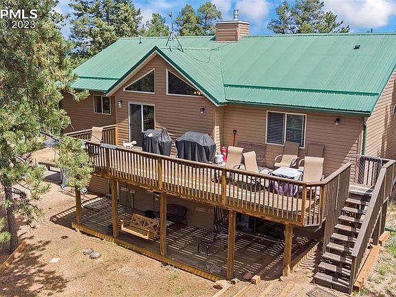 Welcome to your mountain paradise! Nestled on a generous 1.38-acre lot, this exquisite 3-bedroom, 3-bathroom home offers a tranquil retreat with captivating views that will leave you in awe. Step inside, and you'll be immediately captivated by the grandeur of the high vaulted ceilings, adding an air of spaciousness and sophistication to the living spaces. The double-sided fireplace is a striking centerpiece, providing a cozy ambiance that warms both the living area and the adjacent space, perfect for intimate gatherings or peaceful moments of reflection. Prepare to be mesmerized by the breathtaking views that surround this mountain home. Whether you're gazing out the large windows or stepping onto the outdoor deck, the beauty of nature unfolds before your eyes. Imagine waking up to stunning sunrises and unwinding to picturesque sunsets - this home truly brings the outdoors in. Situated just minutes away from both Cripple Creek and Florissant, this property offers the best of mountain living and convenient access to nearby amenities and attractions. Enjoy exploring charming local shops, dining at quaint restaurants, or immersing yourself in the rich history of the area. The three well-appointed bedrooms provide comfort and privacy for everyone in the household, while the three bathrooms offer convenience and ease. Embrace the serenity of nature on this generous mountain property, with ample space for outdoor activities, gardening, and creating cherished memories with loved ones. Don't miss this once-in-a-lifetime opportunity to own your dream mountain home. Schedule a viewing today and let the magic of this location and its surroundings captivate your heart. Your mountain adventure awaits!