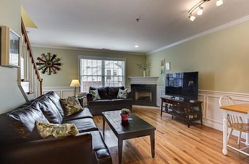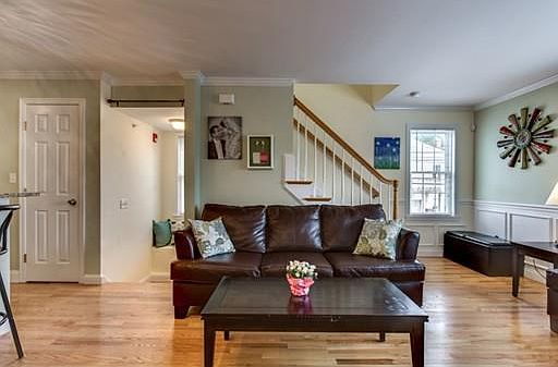 Fabulous west end location! This end unit 2003 Townhouse features an open layout with gleaming hardwood floors throughout , 1.5 baths, a fireplaced living room and two good sized bedrooms, great garage parking and an additional off street space ! Economically gas heat with on demand hot water! The shared common area offers a swing set,there's even a space for your grill!. Walk to public transportation,restaurants parks and easy access to 95 and Masspike!