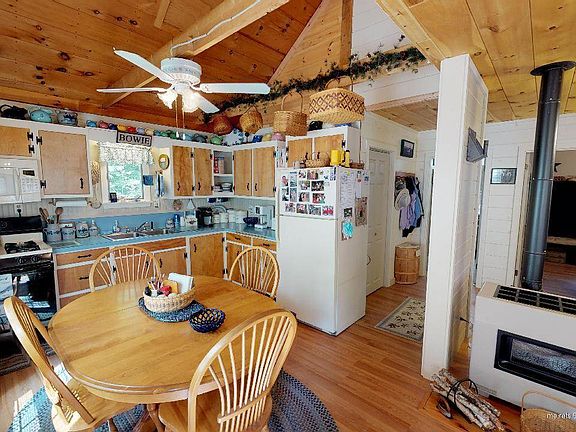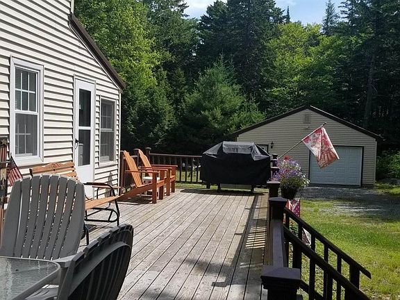 Cozy well maintained, low maintenance home nestled in the Maine woods with a wide front deck for wildlife viewing and outdoor entertaining. Open living space and bright sun room make this home inviting and homey. Excellent use of square footage offers three private bedrooms and a cozy reading nook and additional sleeping space. Deeded access to Big Greenwood pond, excellent ATV Access on 2.39 acres with a large garage and storage shed.