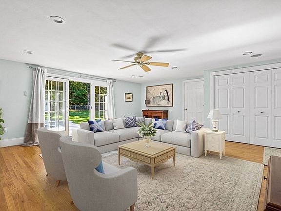 Spacious expanded cape set beautifully on over an acre of meticulous maintained land. A charming porch welcomes you into the thoughtfully rebuild of this classic New England home. The bright family room overlooks the heated inground pool & grounds framed w/perfect outdoor entertaining space complete with fire pit and well water with brand new pump. Back inside, an open floor plan continues to the large dining room & kitchen area anchored w/a custom tiled fireplace. An additional family room/office/playroom & bath w/laundry complete the main floor. Upstairs, three generous bedrooms & full bath offer plenty of storage. A quiet sitting room leads to the impressive master suite featuring a balcony for peaceful morning coffee. Full basement & FOUR car garage. Prime location near shops, stores, and route 3 while just across from the conservation trails for an evening walk. Do not miss your chance for this truly impressive property.