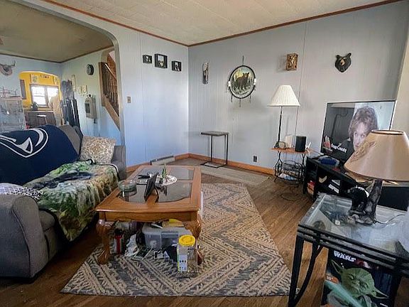 The charm and potential this three bed, one bath home has is sure to captivate you! Upon entry you will find its original hardwood flooring throughout along with an abundance of natural lighting. The spacious first floor is comprised of a cozy living room, a large dining area, and an eat-in kitchen. On the second level are three bedrooms with fresh paint, and a large bathroom. The ample amount of space in the attic will spark your imagination with possibilities. This home features a new metal roof, furnace, water heater, pellet stove, and new electrical. Outside amenities include a front porch, large backyard, and off-street parking. Call today to schedule your showing!
