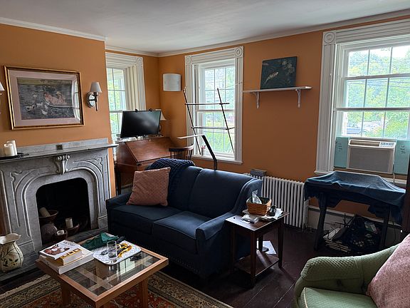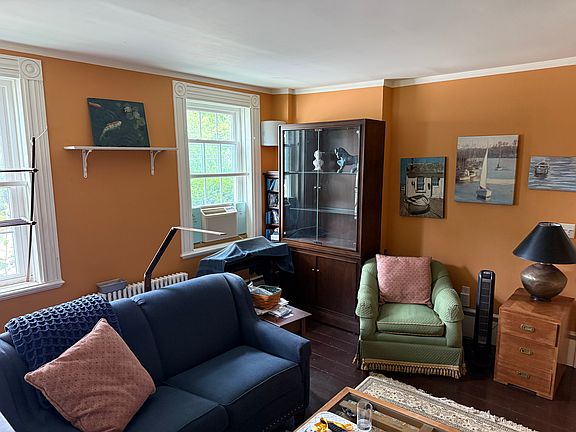 This first-floor private covered entrance 2 Bedroom apartment was updated to the owner's specifications. One enters from the convenient off-street parking lot, by perennial flower beds into the "pantry' area, featuring a bench and coat rack, and cabinets for food storage. Off the pantry is the second bedroom, bathroom (tiled, flush-mount shower area), and a laundry area. The pantry extends to the kitchen and dining area, with non-functional fireplace and built-in China cupboard. The kitchen has all stainless-steel appliances, with granite counters, and dishwasher. The stove is gas with multiple 15,000BTU burners for the exacting gourmet meal preparation. From the kitchen/dining area the apartment extends to a foyer with large coat closet, then onto a 4-season porch for relaxing, entertaining, or a quiet lunch. The foyer also points to a large (15x15) living room, again with a non-functional fireplace, wall-mounted TV, and wiring for surround sound movie viewing (electronics not included). A pocket-door leads to the master bedroom (15x15), which also has non-functional fireplace, as well as built-in closets and drawers. A separate walk-in closet and bathroom lead from the bedroom. The tiled bath has a jetted 2-person tub, heated towel rack, and wired-in audio, along with smart-lighting (color-changing) pendent fixture over the tub. The toilet has a built-in bidet. This apartment is available 8/1 either unfurnished ($2600/month with lease, and heat/hot water included), or furnished ($3000/month with lease, and heat/hot water included). Heat and hot-water included. Electric and Internet not included, recycle bin provided, tenant provides Exeter trash bag.