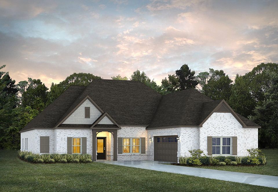 The "Alexandria" is sure to provide a delightful living experience with its one story design and easy access and flow from room to room. This Ranch-style home is sure to please! The appealing entry foyer is sophisticated yet open and joins the formal dining room and offers an additional room useful as a study or living room. The open vaulted family room and kitchen with large center granite island is made for entertaining. The unique master suite offers a large bedroom area, functional master bath with split granite vanities, garden/soaking tub and tiled shower with glass door and his and hers walk in closets. The additional 3 bedrooms provide plenty of closet space and two additional bathrooms. This highly desirable plan is perfect for multiple lifestyles.