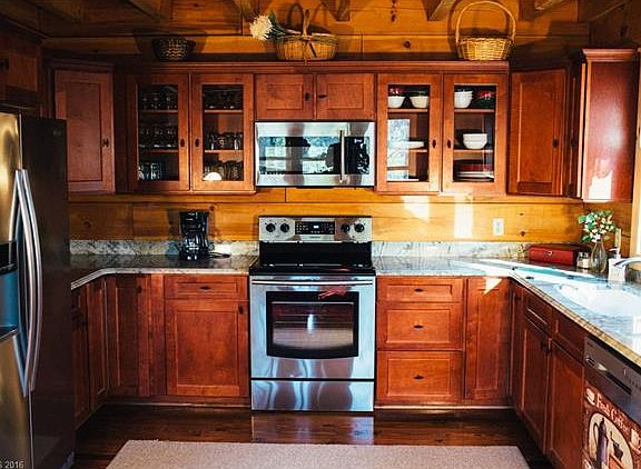 Nearly 3000 Sq Ft FURNISHED LUXURY LOG HOME near Black Mountain and Asheville! 4 Bedrooms, 3.5 Baths, IMMACULATE! Vaulted Ceiling! Finished WALKOUT Basement. Beautifully Appointed Home with Wood Fireplace. Granite Counters and Kitchen Appliances are NEW! Mill Creek Ridge Borders the National Forest! Walking Trails, Trout Points & Long Range Mountain Views! Established, Successful Vacation Rental. Home warranty. Must See! 10 min to Black Mountain, 25 Min to Asheville!