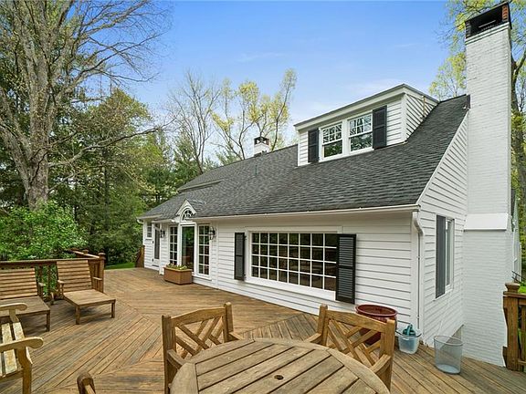 Gated entry to sweeping driveway leads to this lovely vintage Colonial that sits proudly amid perennial gardens, flowering trees and specimen plantings. Artistically enhanced and lovingly maintained over the years with the utmost attention to detail and architectural integrity. Light-filled interior spaces offer fabulous views onto a beautifully designed landscape from every room. Perched perfectly on 1.2 bucolic acres in the heart of Pound Ridge, and offering ultimate privacy, the property is across from the renowned Pound Ridge Reservation with miles of hiking and riding trails. A large rear deck incorporates outdoor entertaining area and fire pit with inviting indoor spaces. The entire property is fenced to protect the specimen plantings.