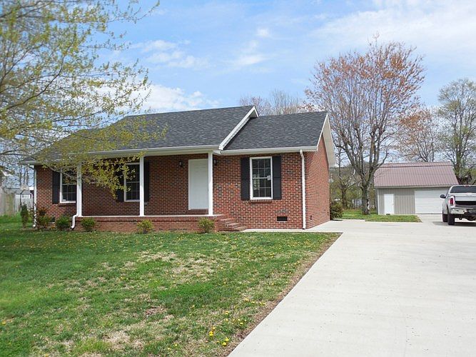 Cute as a Button! Brick Ranch Built in 2011 New Construction with OPEN FAMILY/KITCHEN/DINING with Stainless Appliances Included, 3 bdrm., 2 bath, Utility rm., Covered Front Porch, Nice Size Rear Deck with Above Ground Pool and NIce Metal Detached Garage/Workshop. Mature Landscaping, Nice Level Yard, Shade Trees in Rear. Central Air/Total Electric. MOTIVATED SELLER! 1 Year Builders Warranty