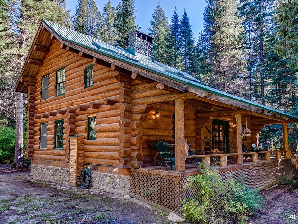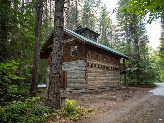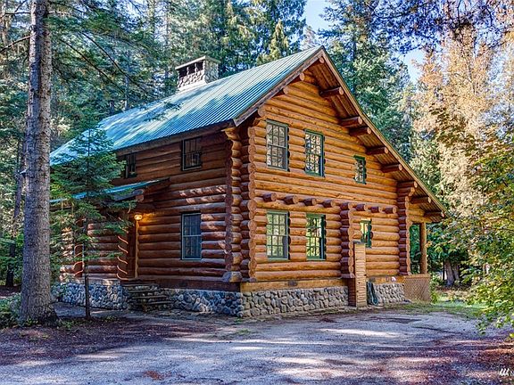 A once in a lifetime opportunity to own a riverfront log cabin like this one! NO bank sandy shore of the Wenatchee River sits this hand hewn log home crafted with Ponderosa Pine salvaged from the Yellowstone Fires of 1988. Based on the floor plans of the historic Jefferds Tavern of York Maine built in 1750. Nearby sits a historic log barn salvaged from Tennessee and re-assembled on site. The barn is now a 2 car garage with a game room above. An additional adjacent little cabin sleeps 5. Total living space in 3 structures is approx 2769 square ft. Stained glass details, floor to ceiling river rock fireplace, live edge interior siding, grand exposed beams. NO neighbors to see across the river. A must see to appreciate the detail & charm.