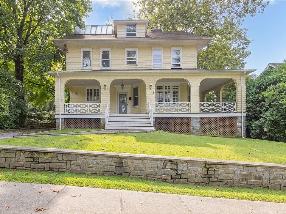 Reminiscent of a Painted Lady, this charismatic Victorian Revival with yellow painted shakes and stone wall awaits its new owners. Charming, true wrap-around porch adorned with archways, white railings and crossing balusters provide irresistible views of the manicured front lawn and greenery. Step inside the vestibule entrance into large center hall graced with splendid staircase. Formal living room has two walls of built-in bookshelves and wood burning fireplace. Formal dining room hosts second fireplace and swinging door to butler's pantry. All the first floor rooms have views of the porch. The old style kitchen can be expanded if desired for today's cooks. Four bedrooms on the second floor and hall bath, plenty of space to redesign for a primary BR and en-suite bath. 3rd floor BR, hall bath and bonus artist studio flooded with light from skylights. Generous deck, large backyard and a detached two car garage. Located in the heart of a quiet neighborhood bursting with period character and flair. Additional Information: HeatingFuel:Oil Above Ground,ParkingFeatures:2 Car Detached,