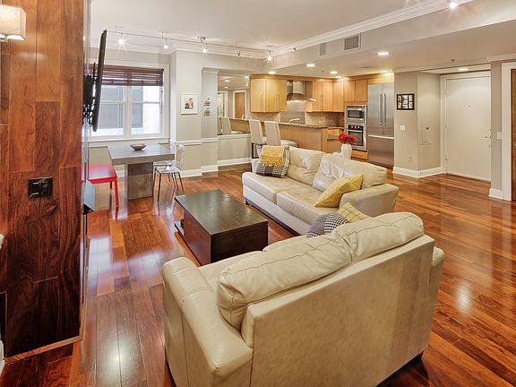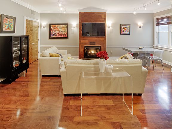 Contemporary concrete and steel elevator building - delivers a sprawling open floor plan home with warm wood floors, two terraces, fireplace, a huge chefs kitchen with tons of storage, gorgeous granite countertops, and high end Bosch appliances with wine fridge. Large bedrooms, closets, large laundry room, and impeccably fitted bathrooms. Dedicated parking, elevator, children's playroom, landscaped common yard and downtown location make this the perfect place to call home.