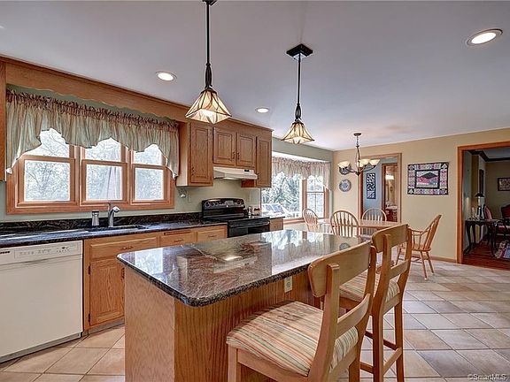 Winter Views Sunny, hill top country setting across street from State land. Quiet and private Beautiful 1.85 lush, landscaped acres in an area of neighborhood strolls, hiking trails, rivers, vineyard, yet convenient to highways & shopping. This 3-4 bedroom/2.2 bath, center hall colonial is light-filled and offers a spacious, open floor plan with generously-sized rooms and rich hardwood floors. Lots of living space and storage. Great for entertaining * Large eat-in kitchen with center isle and Granite counter tops. * Four season room with vaulted ceilings opens to deck surrounded by beautiful, private backyard * Master bedroom with walk-in and full bath * PLUS - Finished Walkout lower level with plenty of natural light, bath and three additional rooms ideal for - Office with walkout entrance, media room, playoom or "man-cave". * Walk-up attic with floor. * 4th bedroom is perfect for nursery or office Newer mechanicals and central air. New Big Y under construction in the center of town.