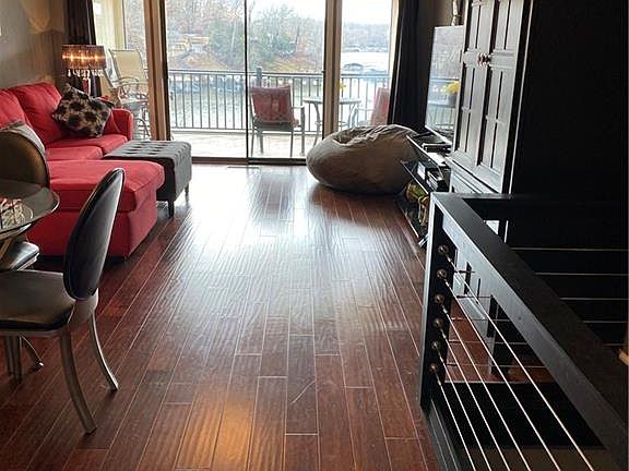 One of a kind waterfront condo with slip! Modern/Contemporary Remodel completed by MESA Contractors. Remarkable lake views from both private decks! Updates include: hardwood floors, laminate flooring, new fixtures, 2 barn doors, backsplash, vanity, electric fireplaces, custom shower, custom shades, and new paint. Furniture included -see inventory list. Also included new Sensi smart thermostat and water softener. Don't let this gem pass you by!