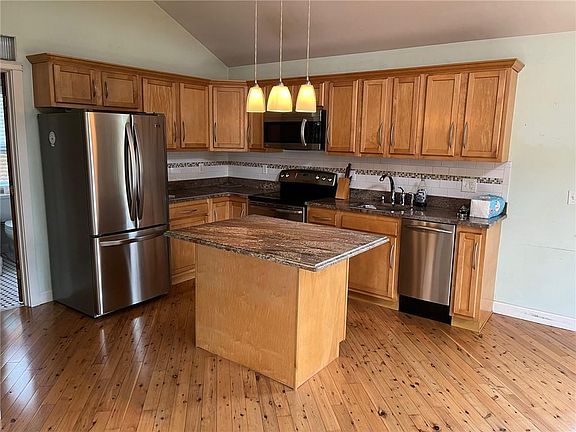 This home located in the desirable COMMON FENCE POINT neighborhood features a cathedral ceiling in the 2nd floor living with ample windows that provide an abundance of natural light...the OPEN kitchen design with convenient granite breakfast bar offers stainless appliances and a nice dining area....wood flooring throughout the main living area and spacious bedroom....easy step in oversized tiled shower in the primary bath with rain shower head and attachments....stack washer//dryer in the tiled bath as well....lower level has a finished bedroom and den area with a bath and shower stall....additional storage and utility area in the lower portion of the house as well....this house also has an awesome out-building//shed for lawn and garden equipment//tractor garage...this house is tucked back between 2 homes and offers nice privacy with arborvitae hedge and fencing...spacious decks and patios out back for entertaining...this ESTATE SALE is subject to court approval....showings commence 5/22...some interesting options with this house for sure! HOUSE IS TO BE SOLD IN AS IS CONDITION