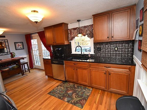 Charming Cape style home on a quiet, dead-end street yet close to everything. Beautiful updated eat-in kitchen with granite counters, hardwood floors and stainless steel appliances with French doors to deck overlooking fenced backyard with AG pool. Living room with hardwood floors with fireplace with heat exchanger. Versatile floor plan offering two first floor bedrooms, one of which has the option to be used as a formal dining room. Downstairs full bath recently updated. Large, open bedroom on second floor could be used a variety of ways. Lovely screened breezeway leads to spacious large two car garage with storage. Newer siding and windows in recent years. Meticulously maintained with little to do but move in!