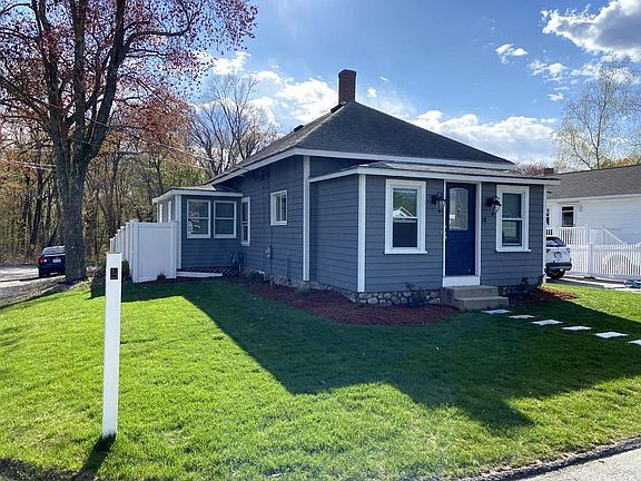 Come view this newly renovated gem on a dead end street in Reading! Fully renovated over the past two years! New kitchen incl. modern white cabinets, dark granite countertops with a breakfast bar, and stainless steel appliances. New bathroom incl. gray laminate flooring, new vanity and toilet, and washer/dryer combo. Hardwood floors refinished throughout and stained with a dark walnut finish. New drywall and fresh paint throughout. Professionally landscaped backyard is fully fenced in, with the option to remove a fence panel to utilize extra driveway space and a 1-car garage. Enjoy the private space on your refinished deck, patio, or around the firepit! The picturesque front yard was hydroseeded in Summer 2019 with professional mulch beds and plantings around the house. Freshly painted exterior. Easy access to 95 and 93. 15 minute walk to downtown Reading and 1 1/2 miles to the Reading commuter rail.