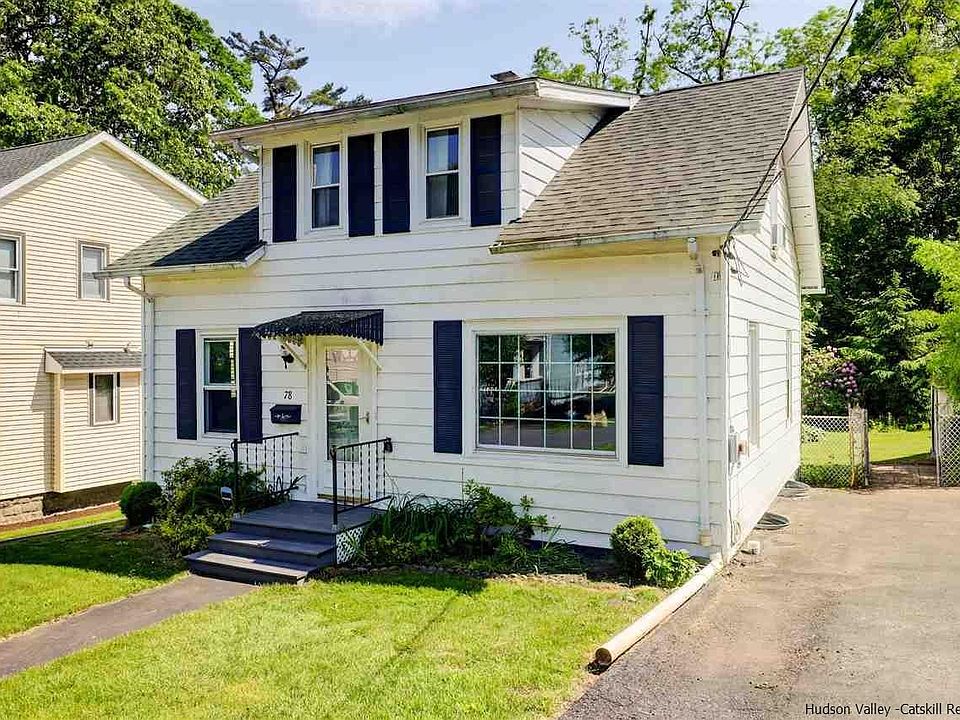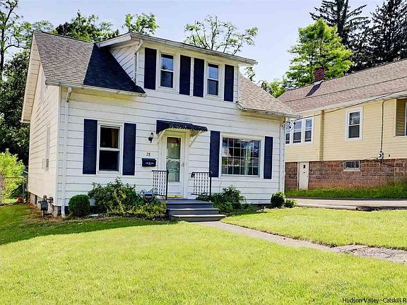 Welcome. Adorable 1930's gem on a quiet street. Super, central location, minutes to Kingston's Historic Rondout waterfront, Midtown Arts District and Uptown's "Stockade". Easy access to Route 9W and the Thruway, and if you head west you can be in the heart of the Catskills in no time. Enter an expansive living area with shining hardwood floors. There's an effortless flow through living, dining and kitchen areas, with lovely arches in between. An enclosed porch off the kitchen is a sweet spot to sip your morning coffee, or make it your three- season office! Ascend the creatively painted stairway to a primary bedroom that easily accommodates a king sized bed. Second bedroom and full bathroom complete the upper level. Check out all the unique storage features. A full, dry basement includes a half bathroom, in-house laundry and ample space for storage and projects. Relax or dine al fresco in the beautiful, partially fenced backyard. There's space and light to plant your garden. This solid and elegant home is ready to be lived in; Roof is about three years old. For local dining, the authentic 1950's "Blondie's Trolley Diner" is just a couple of blocks away, as is notable newcomer "Urban Fork". Here is an affordable, low maintenance alternative to paying rent..