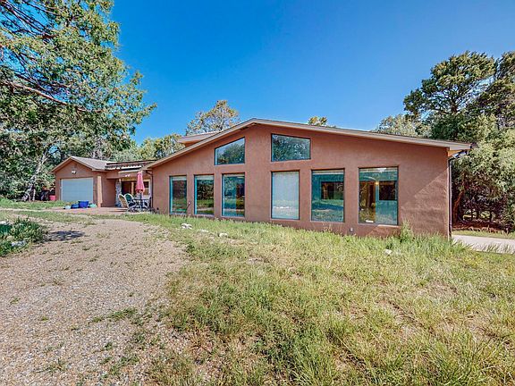 Welcome to this custom mountain home secluded in the trees on 2.5 acres. Very quiet neighborhood just 12 miles south of Tijeras. Enjoy the cool fresh air & open spaces. Seller has done many updates and repairs, new roof, skylights, and carpet last month. Pre-listing home inspection & septic inspection completed. The property is completely fenced with an electric gate opener, 2-car garage attached, & another 2-car detached garage. Large storage shed with dog kennel area. All appliances (no implied warranty) & other items to stay (except pots on porch). Elevated wood log ceilings & large loft with roof access to enjoy the stars. Large, heated sunroom with hot tub. Are you looking to get away from everyone? This is the place for you to do just that. Easy to add a 2nd bathroom.