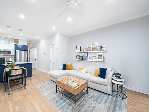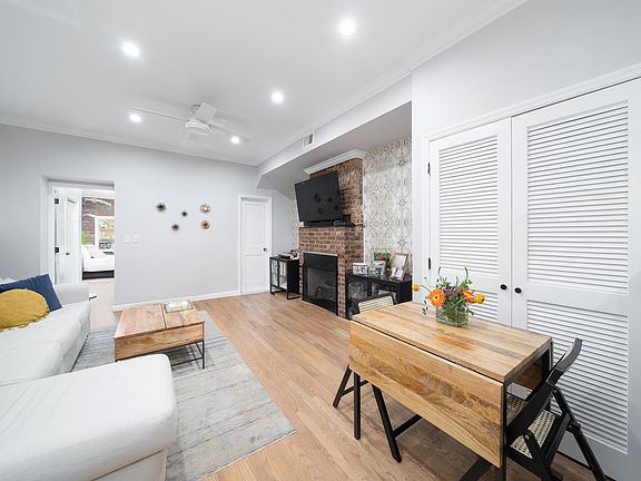 AVAILABLE 10/01/25 - Beautifully appointed, recently renovated 2-bedroom + den/office home featuring a spacious, landscaped PRIVATE backyard. This charming home offers a cozy living room complete with a gas fireplace, exposed brick, and hardwood floors throughout. The spectacular chef's kitchen features a state-of-the-art stainless steel appliance package, quartz counters, and a breakfast bar. The primary bedroom is bright and spacious with two skylights, exposed brick, and two custom closets. The second bedroom is also sizable and filled with natural light, complemented by elegant French doors. The bathroom features a dual vanity, an abundance of storage, custom marble tile work, a soaking tub, and a linen closet. The den offers direct access to the landscaped yard through large, full-panel glass sliding doors. Additional highlights include excellent storage throughout, central A/C, and a full-size washer and dryer in-unit. Conveniently located with easy access to NYC via PATH or bus, restaurants, grocery stores, parks, and the Hudson River waterfront promenade.