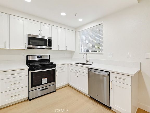 WELCOME TO YOUR NEXT HOME IN THE HIGHLY DESIRABLE NORTHWOOD COMMUNITY OF IRVINE. This beautifully updated one-level 3 bedroom, 2 bathroom condo features a bright, open floor plan with abundant natural light throughout. Enjoy a brand-new kitchen showcasing elegant Quartz countertops, new white shaker cabinets, a wide stainless-steel single-basin sink, and a modern faucet. The home also features brand-new vinyl wood flooring installed throughout for a clean and cohesive look. Both bathrooms have been tastefully remodeled with new cabinets, Quartz countertops, updated sinks and faucets, and freshly refinished tubs and tiles. Additional highlights include a cozy living room fireplace, a separate laundry room with side-by-side hookups, and a wrap-around outdoor patio deck perfect for relaxing or entertaining. This home comes with 2 parking spots - an attached single-car garage plus an additional detached single-car garage a rare find. Conveniently located near shopping centers, restaurants and the 5 freeway.