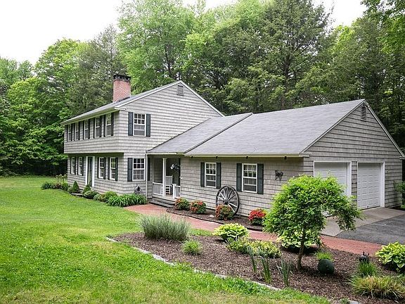 Meticulously maintained and sun-filled Colonial located in one of the most elegant locations and highly desired cul-de-sacs in Greenfield. This lovely home is nestled on 12 acres surrounded by beautiful landscaping and woods. Inside you will find an inviting layout with hardwood floors throughout. The first floor offers a lovely kitchen that opens to the dining room with a brick hearth and wood stove. The cozy living room has French doors which lead to the four season sunroom. The den, bathroom, laundry and a wonderful screened-in porch that overlooks the peaceful surroundings complete the main floor. The second floor has 4 bedrooms with large closets and ample storage space. The lower level features a finished family room which includes a stunning Goshen stone fireplace and high ceilings, ideal for entertaining or some quiet time. The spacious workshop and utility room finish off the basement. Enjoy privacy while just minutes from I-91 and Rt. 2. Check out the 3D virtual tour!