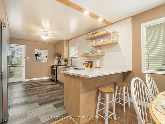 Welcome to 78 Merrick Street, a beautifully updated raised bungalow in one of Smiths Falls most desirable neighbourhoods.This bright and inviting home offers three bedrooms on the main level, including a primary suite with a two-piece ensuite, plus a stylish four-piece main bathroom. The open-concept layout connects the living, dining, and kitchen areas, creating the perfect space for entertaining.The fully renovated kitchen has been thoughtfully redesigned with custom cabinetry, stainless steel appliances, a tile backsplash, peninsula island, and open shelving in a warm blonde wood finish. A door leads from the kitchen to the west-facing deck, perfect for enjoying evening sun. There is also a lower deck area that offers even more outdoor space for relaxing or entertaining. Downstairs, the sunshine basement includes a cozy family room and playroom area, a fourth bedroom, a two-piece bathroom, and a large laundry and utility room with upper cabinetry, a folding table, and direct access to the single attached garage, which includes room for parking and additional storage. Recent updates include: Roof (2021), Windows (2021), Kitchen (2020), Furnace installed 2020 and cleaned/serviced in Winter 2024, HWT (2019), A/C (2019) Railing & Wood on Balcony (2024), Driveway Paving and Drainage (2024). Located within walking distance to schools, grocery stores, parks, and amenities. This home is the perfect combination of style, space, and location. A must-see for anyone looking to settle into a vibrant, family-friendly community.