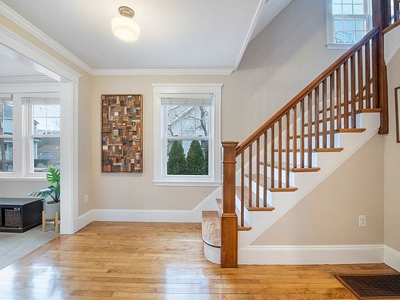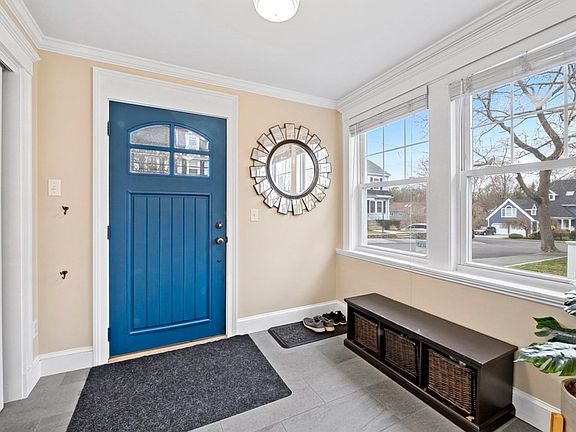 This cheery and sun filled home set atop a hill overlooking the ocean is perfectly situated near the beach and some of Swampscott's finest restaurants. As you pull up the mature landscaping and fresh new walkway give this home excellent curb appeal and charm. Upon entry you are greeted with a fabulous stone entryway with a large double door coat closet. Gleaming hardwood floors accent the open concept fire-placed living and dining room. A chef's dream kitchen boasts high end stainless steel appliances, farmhouse sink, breakfast bar, beverage fridge and coffee bar complete with a separate sink. Rounding out the first floor is an updated half bath and bonus room that is perfect for an office or playroom and has peeks of the water. Upstairs offers 3 generous sized bedrooms with great closets, two renovated bathrooms and a walk up attic which provides incredible storage. Need more? Enjoy central AC, one car garage and lovely fenced in back yard that is calling for a summer time BBQ.