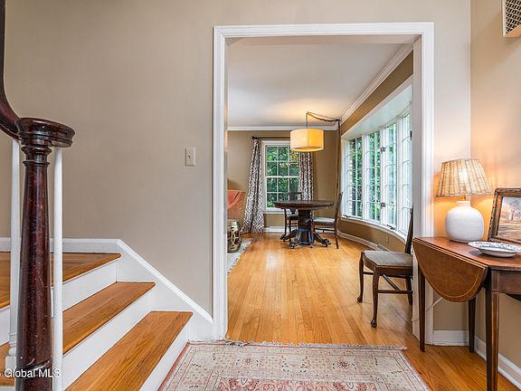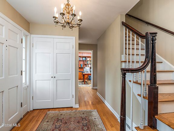 Gracious Colonial in Olde Delmar! This elegant 4 bed, 2 1/2 bath home offers charm & comfort perfect for both everyday living and entertaining. Beautiful foyer, gorgeous formal living room and lovely family room (each with a cozy fireplace), ideal for gathering with family and friends. Host dinner parties in the formal dining room with classic pocket doors and prepare gourmet meals in the expansive cook's kitchen with a chef's stove and generous counter space. The den provides the perfect work from home setup, there is a first floor laundry and mudroom. Primary bedroom has an en suite bathroom with natural stone and heated floors. The bluestone patio in the park like setting backyard invites outdoor relaxation and dining. This gracious home blends classic style with thoughtful updates