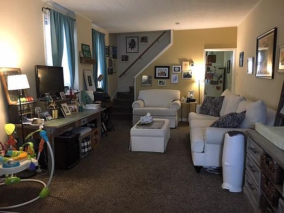 Well maintained and recently updated end unit of triple block home near colleges, park, and shopping on in Wilkes-Barre. Unit is two floors with two bedrooms and one bath. Recently updated in 2016. Small partially fenced in yard. Pets will be accepted on a case by case basis for an extra $25 per month. Street parking with plenty of spaces available. Security cameras on exterior. Landlord pays recycling, sanitation, and sewer fees. Tent pays other utilities including electric, gas (furnace, hot water heater, and stove), water and trash via WB blue bags, and any cable or internet you may like to add. Appliances include refrigerator and stove. Washer and gas or electric dryer hookup in kitchen. All adult (18+) parties must sign 1 year lease and pass credit and background checks, paid for by prospective tenant. Section 8 not accepted. NO SMOKING, NO LOUD MUSIC, NO PARTIES, NO LOUD TV'S ANY TIME OF DAY. Landlord lives next door. Security deposit of $800 due upon signing lease in cash or money order only. First month's rent due upon move in. Showings will be held by appointment only. Text or leave detailed VM. DO NOT CALL OR TEXT BETWEEN HOURS OF 8PM AND 9AM. DO NOT COME TO VIEW WITHOUT APPOINTMENT. Applicants with credit accounts in collections and/or criminal history may not be considered and will be evaluated on a case by case basis.