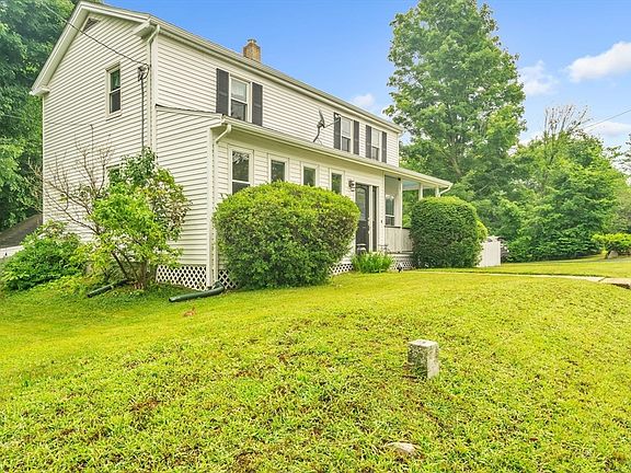 Welcome to this antique colonial home located in the heart of Belchertown! This meticulously maintained home offers so much charm to include wide planked hardwood floors in the bedrooms which also offer ample closet space. Beautiful exposed beams throughout the home. Looking for 1st floor laundry? This home has it! You'll have the opportunity to enjoy the front enclosed porch year-round! So many updates to include a complete bathroom remodel, newer windows, newer hot water heater, brand new oil tank, new gutters on the front of the house and garage. You'll enjoy hanging out on your back deck that features newer Trex decking. The backyard is topped off with a beautiful custom back walkway and beautiful granite steps. Enjoy summer nights by the fire pit on the back patio! A new driveway tops it all off!